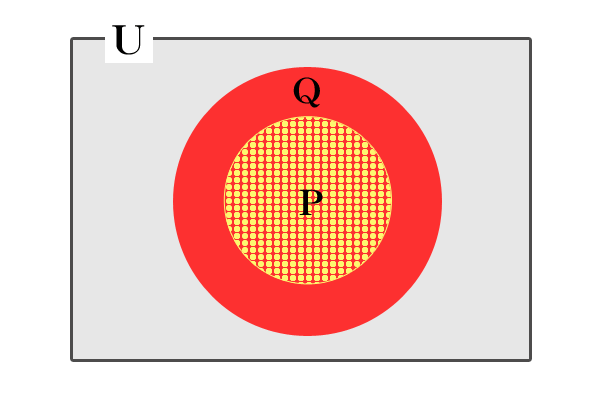 \(\overline{Q} \subset \overline{P}\)の場合には、全体集合Uの要素は、
